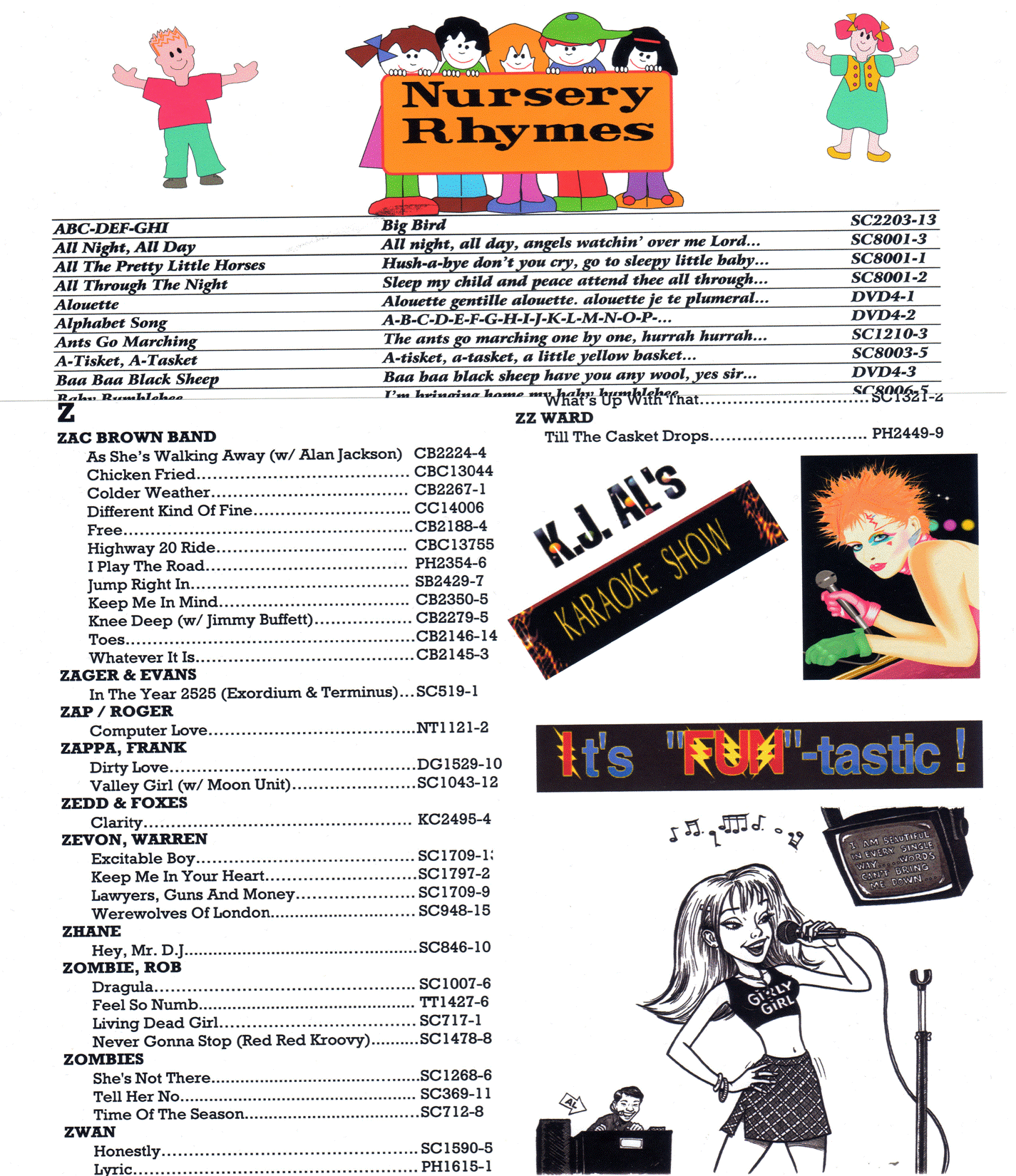 I’ve been using karaoke book artwork too for years. Well, it’s so nice to be retired!!! Meaning I got the Styx in me: “too much time on my hands”. No additional pages added from the graphic inserts. They’re added to fill the blank spaces. I think it looks better with, than without. I cut & paste the pages to make room for posting. I have 2 more pages with graphics but I think you got the idea about utilizing blank spaces. I also did the singer’s pics years ago, & the pages just keep on adding. (“Hey, I don’t see my picture there”! “Me too!”). So I decided to post their pictures @ the venue’s hallway.  Attachment: