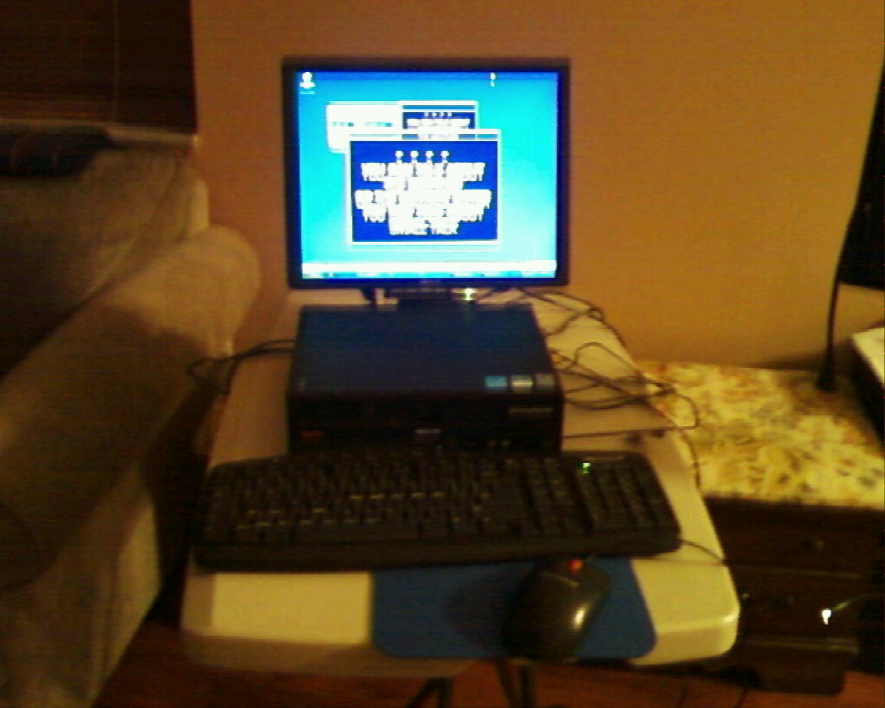 PS: While I agree that a junk computer could be used for a kiosk, I couldn't find an inexpensive slim line computer and that's what I wanted! What I have is light-weight and fits into a carry-on luggage bag