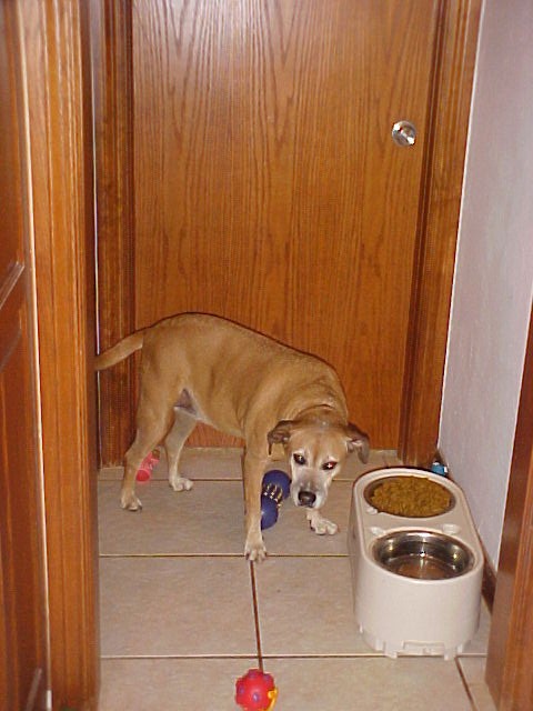 We have been real lucky too, even tho only Sophie has binkys (alpha dog & all that); only Jacob has ever torn anything up (unless you count the scratching on the door and the digging in the backyard, which we don't)  . Jacob has torn up the towel we left out so that we could wipe them off when they come inside and a blanket that had been in the garage under the Mustang while Richard and our neighbor worked on it.