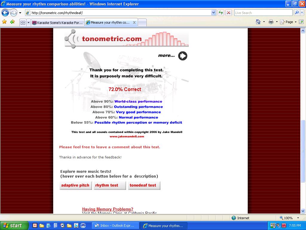 I got an 86.1% on the tone deaf test, so you know it's gotta be wrong....'cause my memory is a thing of the past? LMAO