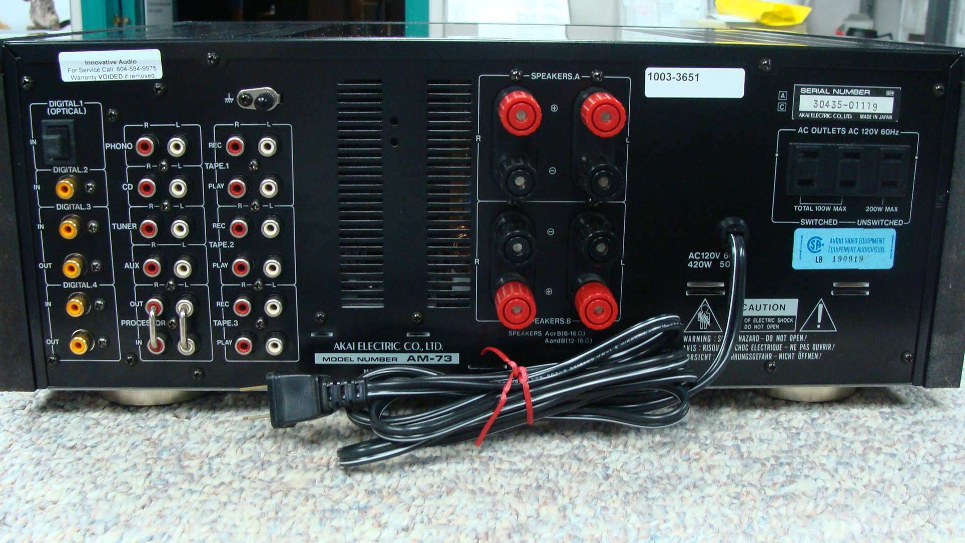 My bad, I did mean to say I am running the Stereo out to my Akai Aux input. The 7/8 phone jacks are being used as input from my laptop as you mentioned.