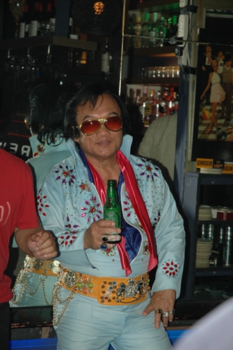 elvis taking a beer break: Elges is his stage name and have been to Graceland to pay homage to the KING.