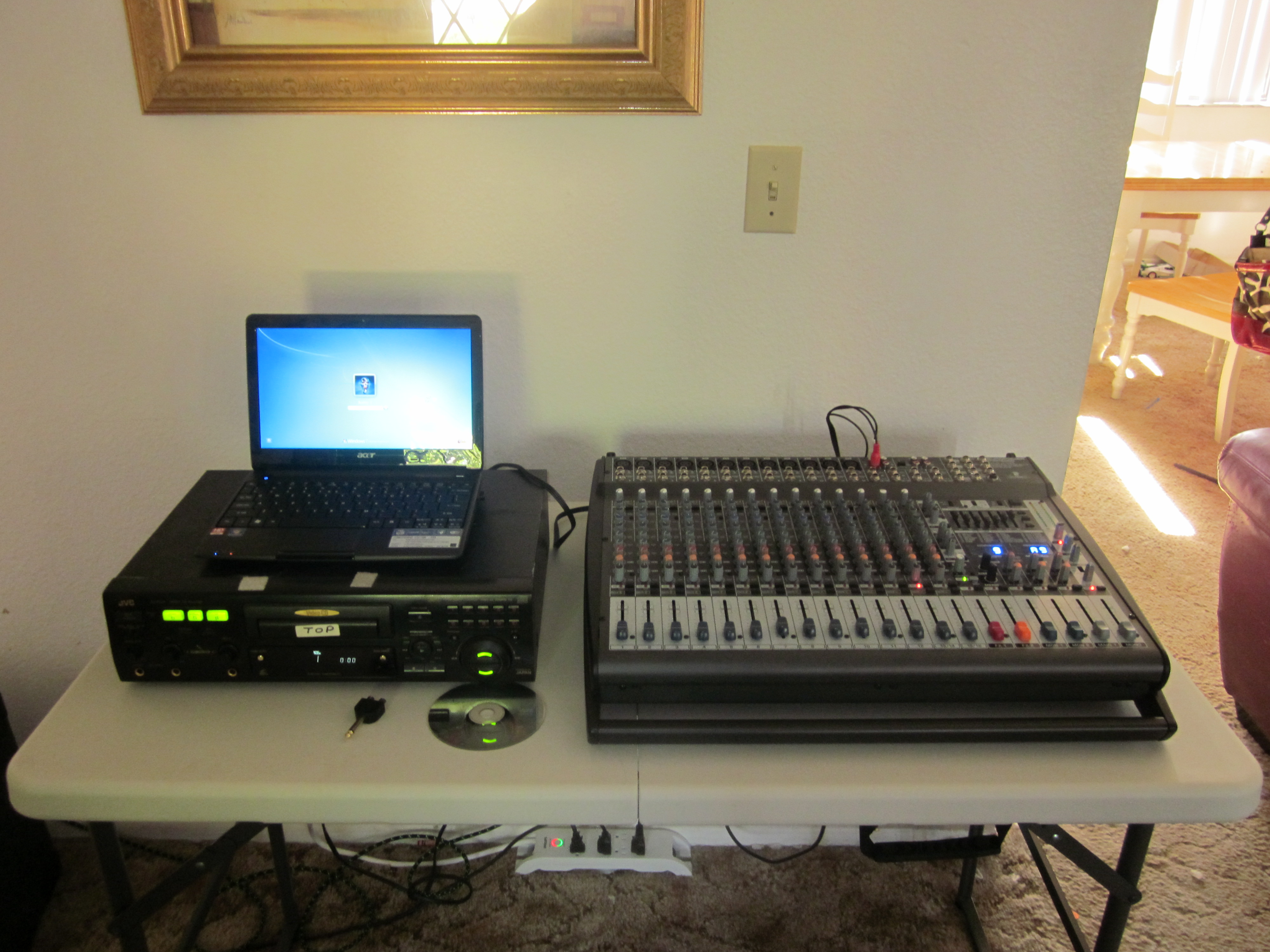 leopard lizard wrote: I stand because I have a difficult time sitting still and it actually helps my back to keep moving and changing positions. Ours is also a 5 hour marathon. I also have it set up so that I am in front of the table next to the singer and not behind it. That way everyone can see me put in the discs......plus I feel more accessible. I'm behind the table, but everything is visible. I don't hide the equipment behind a facade.