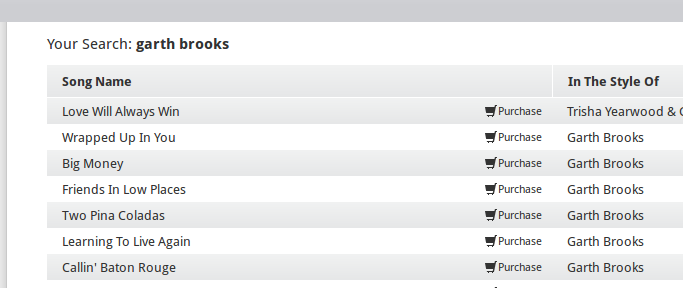KaraokeIan wrote: Doowain wrote: Yes.... I just want to be able to select one song if I want, select the format I want, buy it, and then download it.... just that simple... where's the link to do that? Seems that wne I select a song to hear a sample it re-directs me to pay $10/month. I need a link to get to select songs, buy, and lownload. HELP  Agree. Their site is crap and not user friendly at all. They could learn a thing or two from selectatrack and karaoke-version. Just let people find the song they're looking for and buy it without needing to "sign up" for anything. They also need to make their catalog public and let it be searchable on iCroons. I know people must be asking them for this stuff and they don't seem to care. I don't get it. They need to look at other download sites and realize the basic simplicity. On other sites there's no "sign up" required because the moment you make your first purchase, your account is created automatically. How are you supposed to browse their catalog and see if you want anything without first feeling like you're getting into some type of agreement with them? The whole thing just gives a bad vibe to the end user. find the song you want, Attachment:
