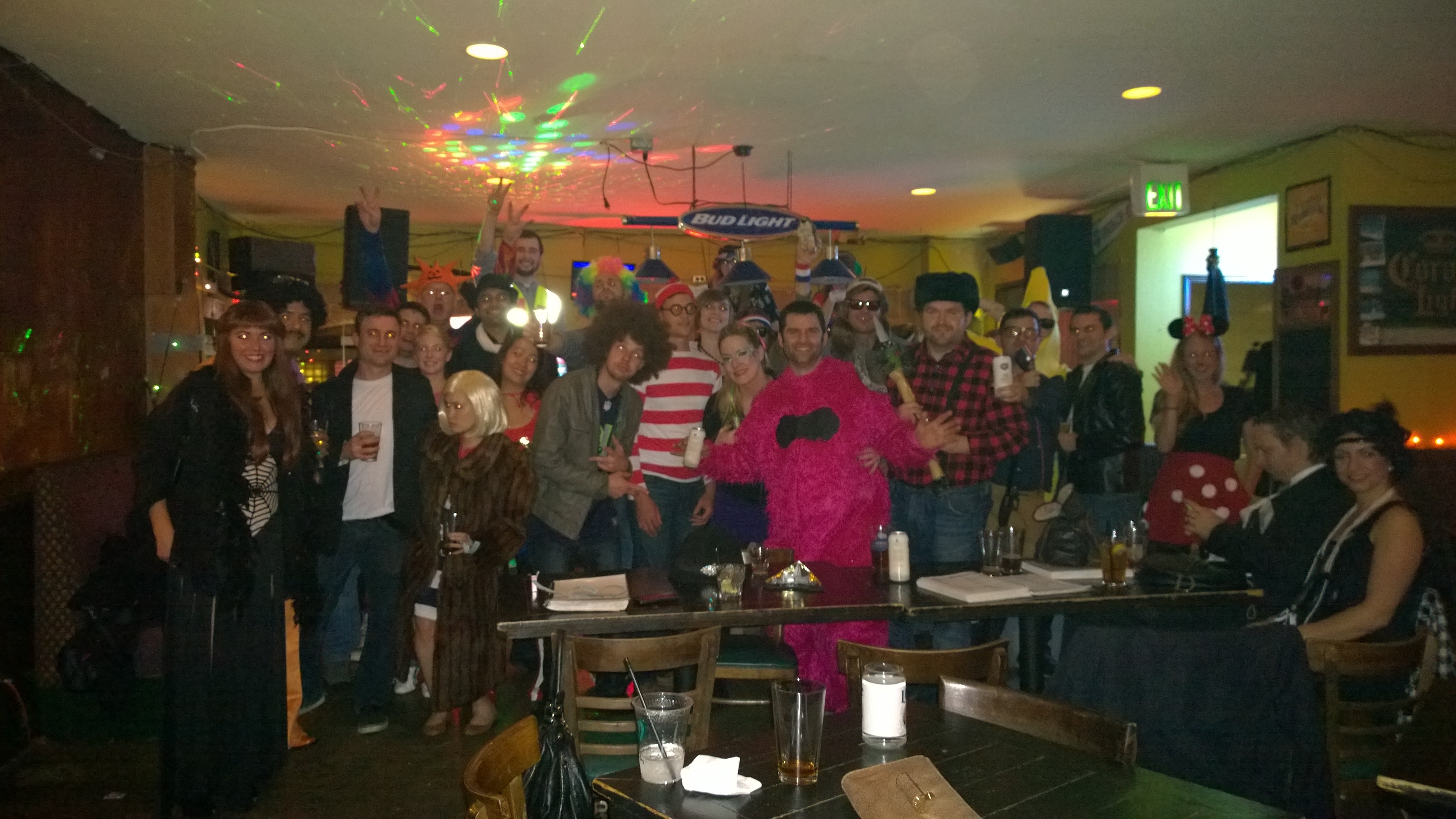 3rd and final Halloween at our downtown Seattle location. New owners are shutting down in December to remodel and will not bringing karaoke back. Somewhat of a bittersweet night since this is out longest running gig at 2 years 9 months. Lots of regulars and new people, 55 deep rotation, and way too much Jaeger.... I am rockin' a onesey... Attachment: