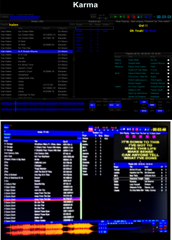 Bob Latshaw wrote: For visual comparison Attachment: WindowsKaraokeApps.png Here are the top 5 I've seen used (in alphabetical order, at scale, on a 1280 wide display) Attractive looks wise order 1 Karma 2. Video Hoster 3. Compuhost 4.Justkaraoke 5. Siglos But it doesn't exactly mean that the best functional software is in that order. 1. Karma 2. Hoster 3. Siglos 4. Compuhost 5. Justkaraoke