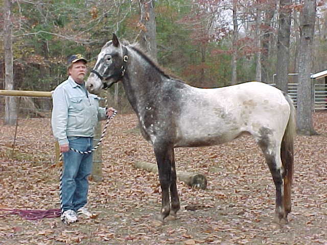 Here he was 6 months ago...he's filled out more now and got more muscle...He is a huge horse...Robbie is a very large guy, so you can compare the two of them....His name was Easy...We just changed it to "Big Easy"  That's fitting for a Louisiana horse, huh?