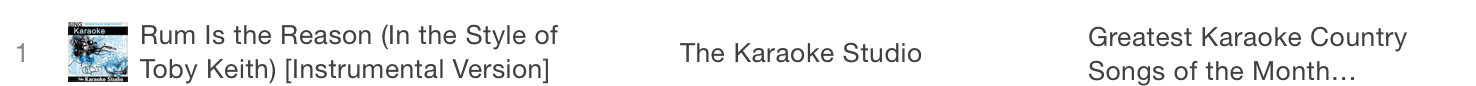 Karaoke Croaker wrote: Rum is the Reason" is available on BKD and not available at Karaokeversion.com or SBI. How did that happen? I think you missed my point...these guys buy instrumental tracks from wherever they can...then they script them and sell them. This song is readily available as such - even on itunes...
