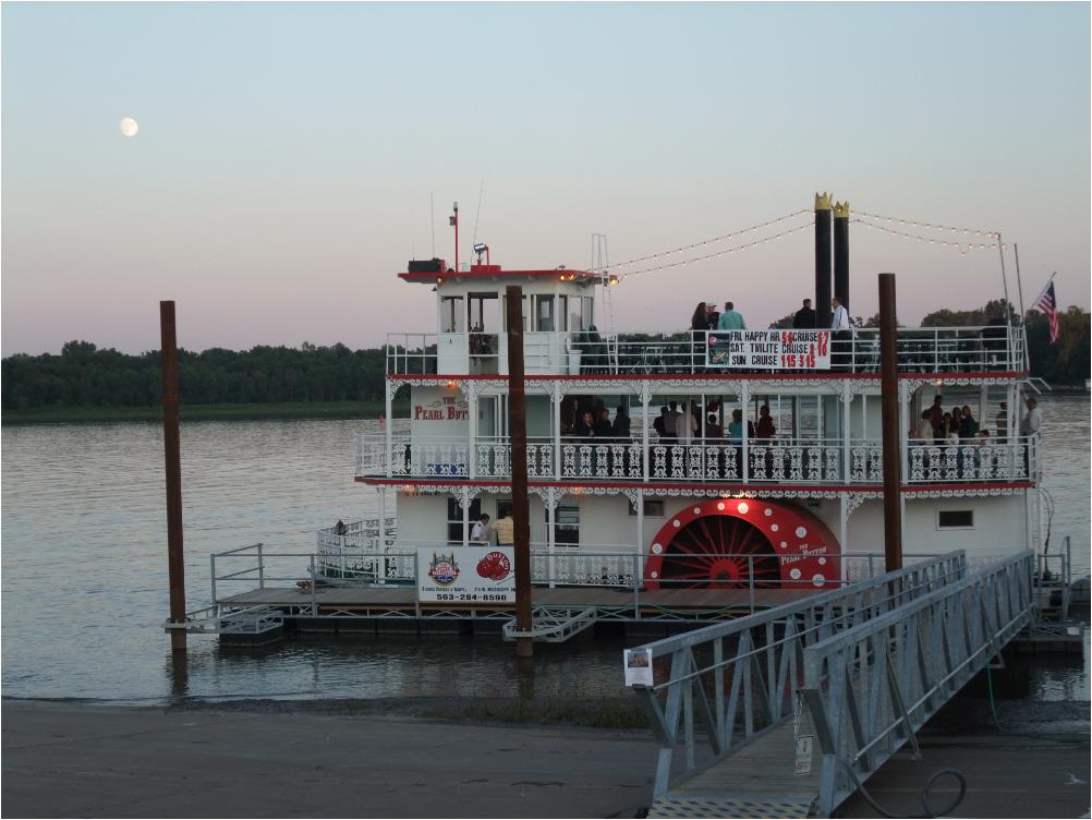 Every night I take a bike ride on the bike trail that runs along the river and Friday night as I was passing the bridge to Illinois, I saw the boat (Pearl Button) passing under the bridge as well and I heard music. When I got home, I went to our local paper online and under community events I saw "Big Star Karaoke on the Pearl Button" for Friday's activities.